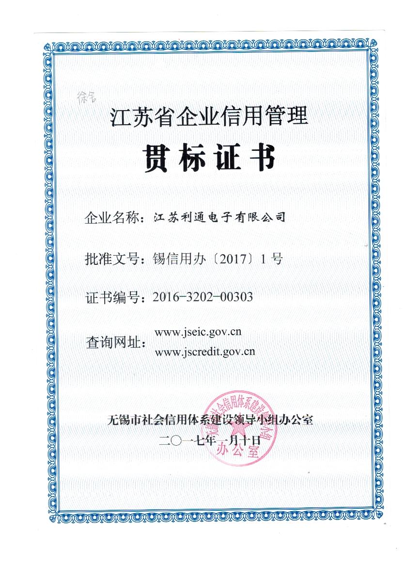 江蘇省企業信用管理貫標證書<br /> <br />
